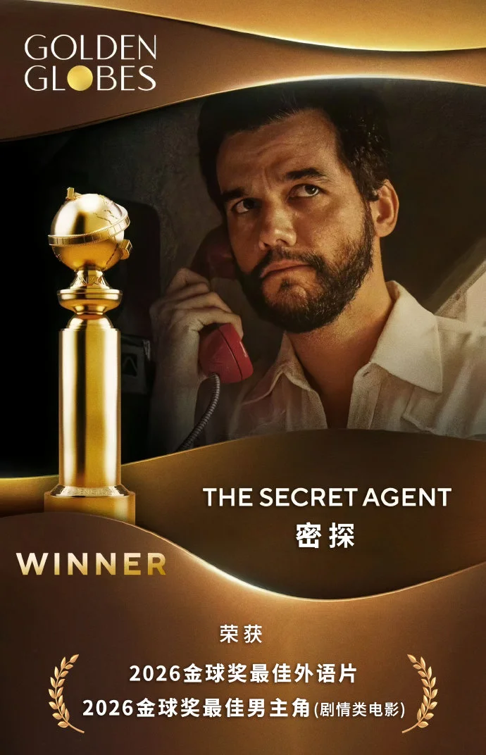 电影《密探》(O Agente Secreto)由巴西导演小克莱伯·门多萨执导,巴西演员瓦格纳·马拉获主演,该片曾入围2026年奥斯卡奖4项大奖,获得2025年第78届戛纳电影节主竞赛单元最佳导演以及最佳男主角奖,以及2026年金球奖最佳外语片奖和剧情类电影最佳男主角奖。