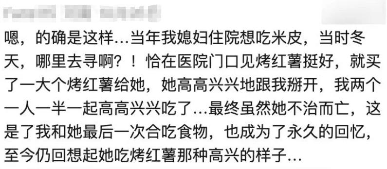 而在社交媒体平台上,这更是一个能轻易引发共鸣的话题。人们分享着不同城市、不同医院门口的相似经历,每个人几乎都有自己记忆中印象深刻的一个“医院门口的烤红薯”。