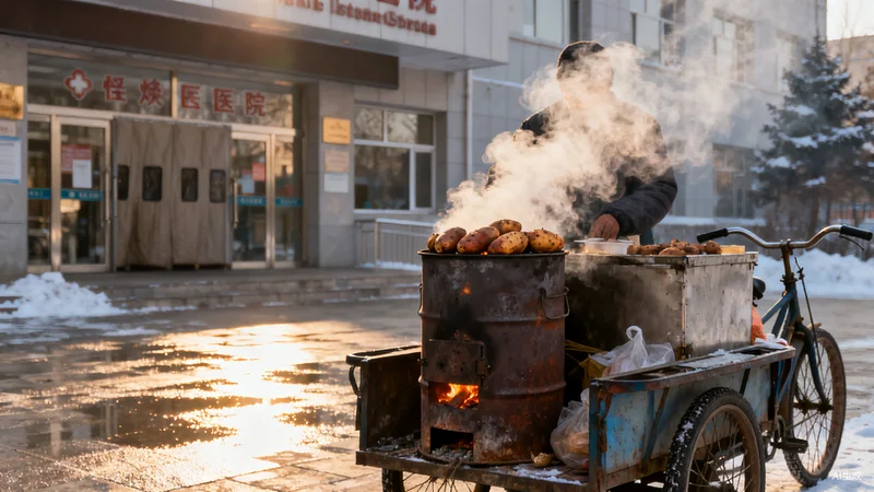 因此,医院门口的烤红薯摊,显然绝非偶然的街景,而是一个沉默着融入城市肌理的微小生态。长久以来,它的存在太过于自然,以至于我们很少追问:为什么偏偏是烤红薯?为什么是它在这个充满焦虑与等待的地方,牢牢扎下了根呢?