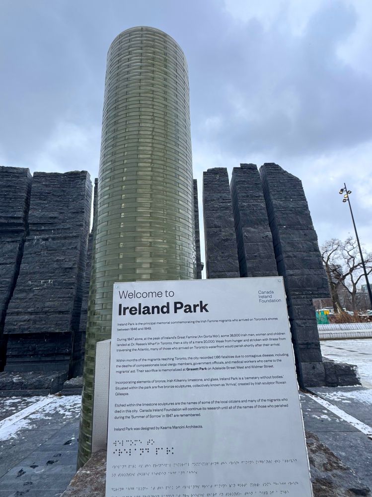 黑色云石碑墙等材料来自爱尔兰,寓意厚重的爱尔兰历史。