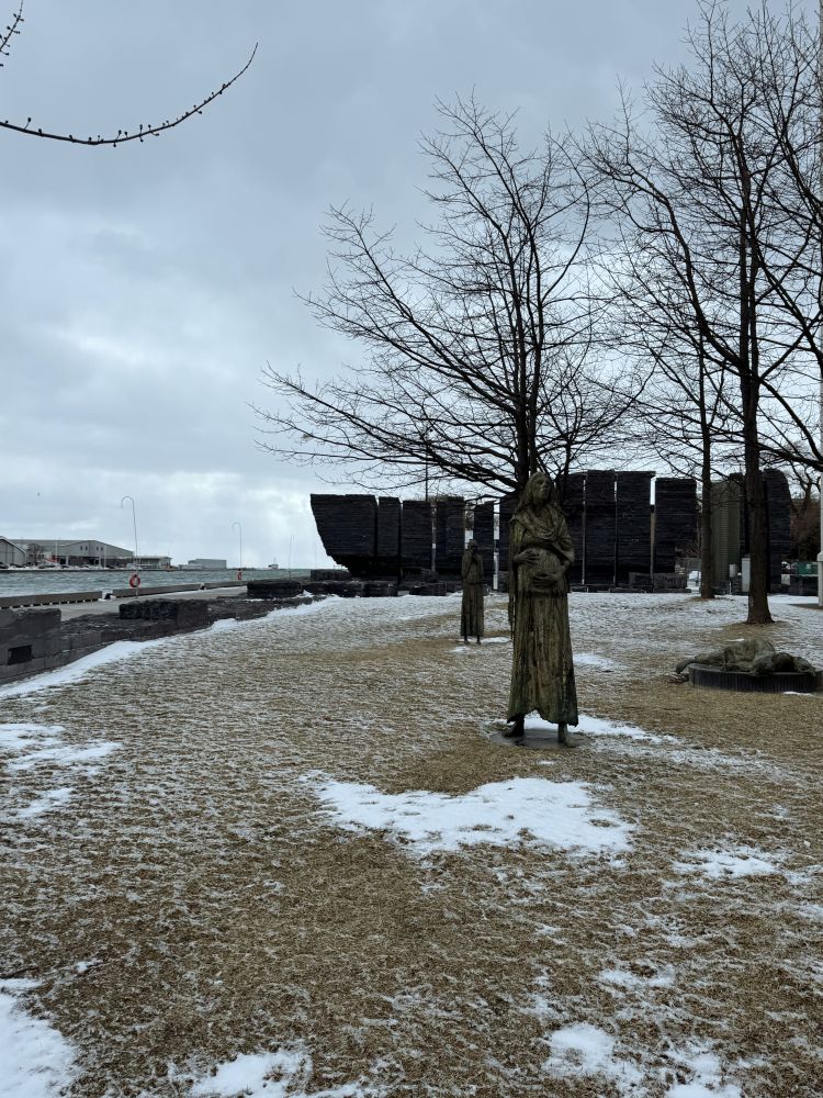 五座青铜塑像是饥荒中的爱尔兰灾民。