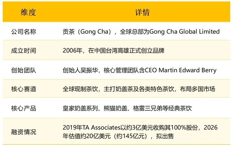 一家茶饮公司,能卖145亿元?最近,餐饮投资圈有条消息传得很快:美国私募基金TA Associates(以下简称TA),正在考虑出售奶茶品牌Gong Cha(贡茶),并已委托摩根大通推进交易。