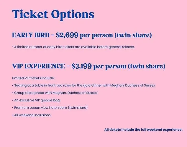 门槛低到“只要2000多美元”,她们就能坐在前排看到“公爵夫人梅根”,能和她一起合照,度过一个愉快的周末。