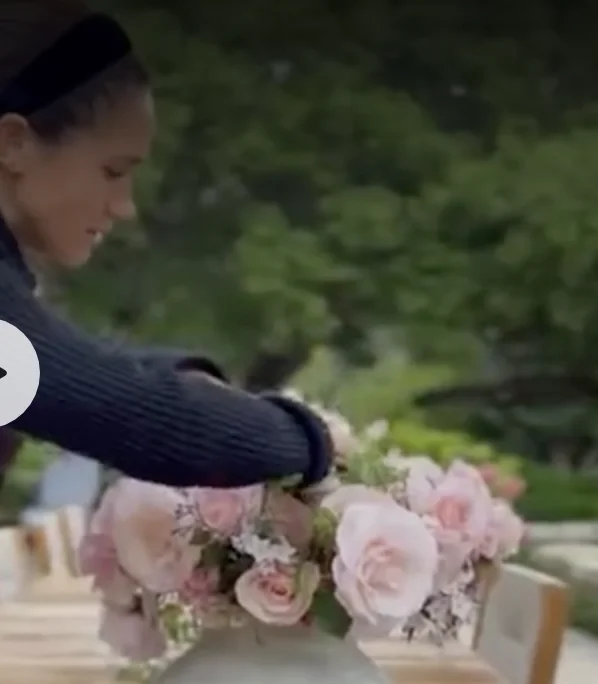 为了宣传,她去到花园里摘了自家的花草插在瓶子里,哈里也帮忙出镜了,还对梅根进行了一些赞扬。