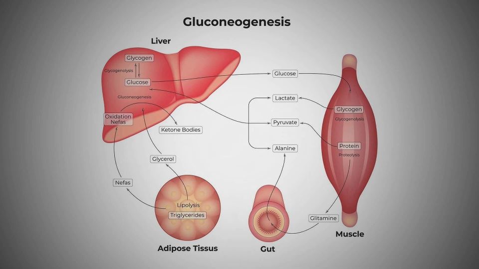 你的肝脏就像一个化学实验室。当压力激素升高,尤其是皮质醇时,它会向肝脏发出信号,让肝脏把葡萄糖释放到血液中。有时是分解储存的糖原,有时是通过一种叫“糖异生”的过程,从其他分子制造新的葡萄糖。简单说,就是身体自己“造糖”。