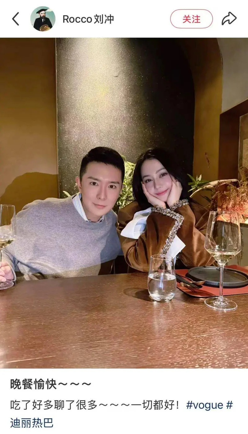 3月18日,vogue主编刘冲晒与迪丽热巴的合影,两人共进晚餐。刘冲称与热巴聊了很多,并称一切都好。评论区不少迪丽热巴粉丝热评,平安就好,一直没露面让大家担心坏了。