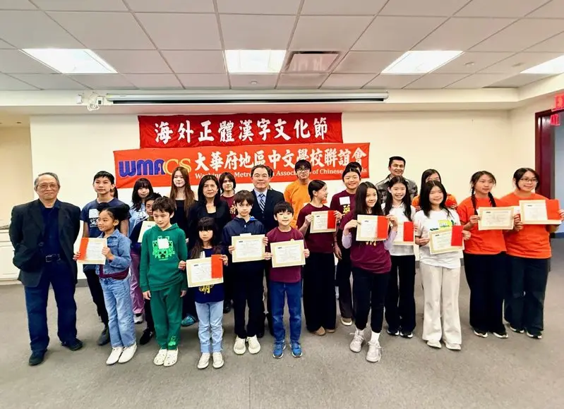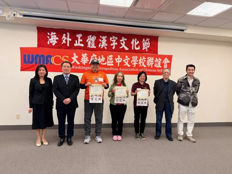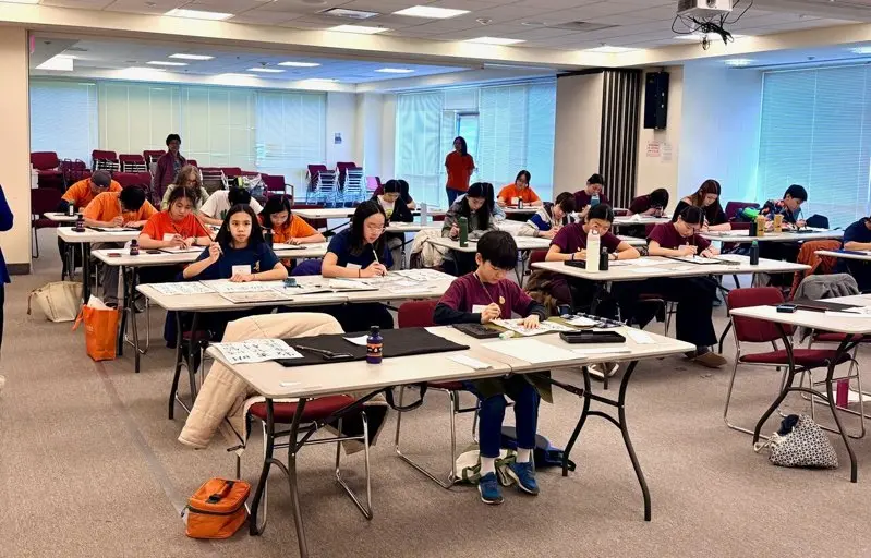大华府中文学校联谊会主办的「2026年度大华府中文学校书法比赛」,日前在华府侨教中心顺利举行,来自慈济、华府、黎明、实验、洛等中文学校及三位成人的29人报名参赛,最终选出15名学生优胜者,成人组则列为观摩赛。