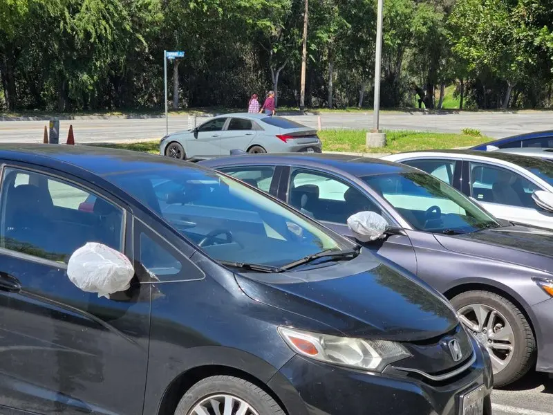 近期走在南加州街头,不难发现愈来愈多停放车辆的后视镜上绑着塑胶袋,从住宅区到商业区皆可见其踪影。这个看似随意的小动作,正逐渐成为一种常见现象,也引发不少民众好奇,其背后究竟有何原因。