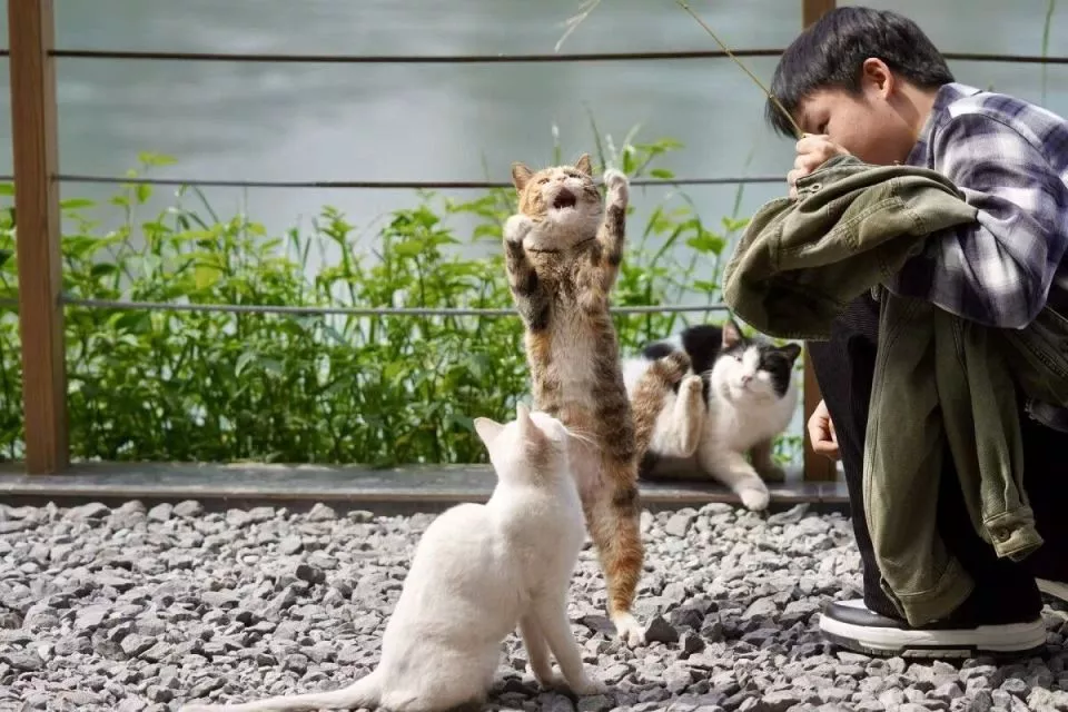 这座江边的流浪猫乐园,甚至吸引了国外游客前来探访。