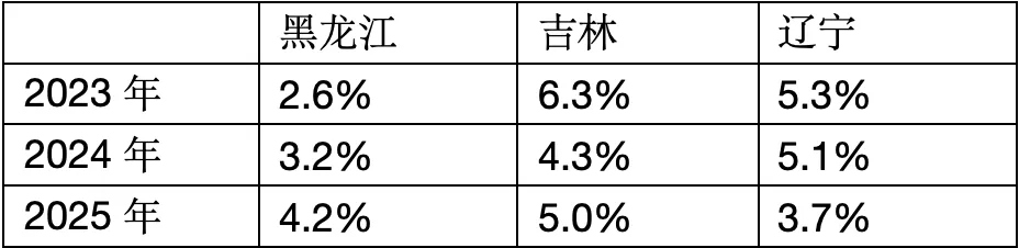 从近三年东北三省的经济增长来看,黑龙江虽然连续三年增速不及全国平均,但是同比增速整体稳健上升;吉林2023年增速超过全国平均1.1个百分点,此后两年略有波折,但整体还是处于全国平均线上。
