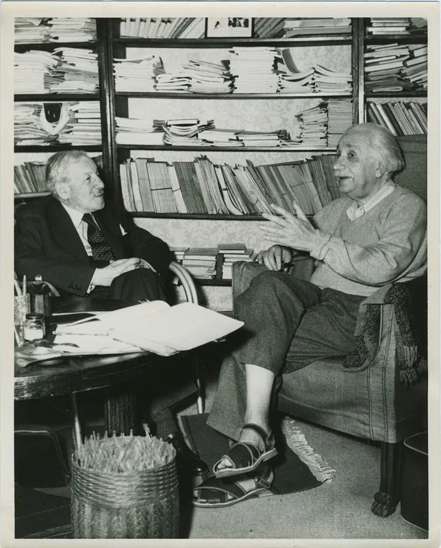 △ 爱因斯坦与政治家、哲学家赫伯特·塞缪在普林斯顿的书房