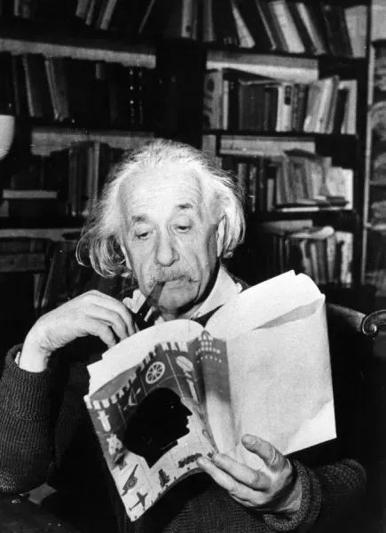 现在,让我们将目光投向爱因斯坦位于普林斯顿 Mercer 街 112 号的二楼的家。这里没有复杂的科学仪器,你将看到一排排被翻得卷边的书籍。桌上到处摊开着各种书与草稿。对阿尔伯特·爱因斯坦而言,阅读是他重要的生活方式。