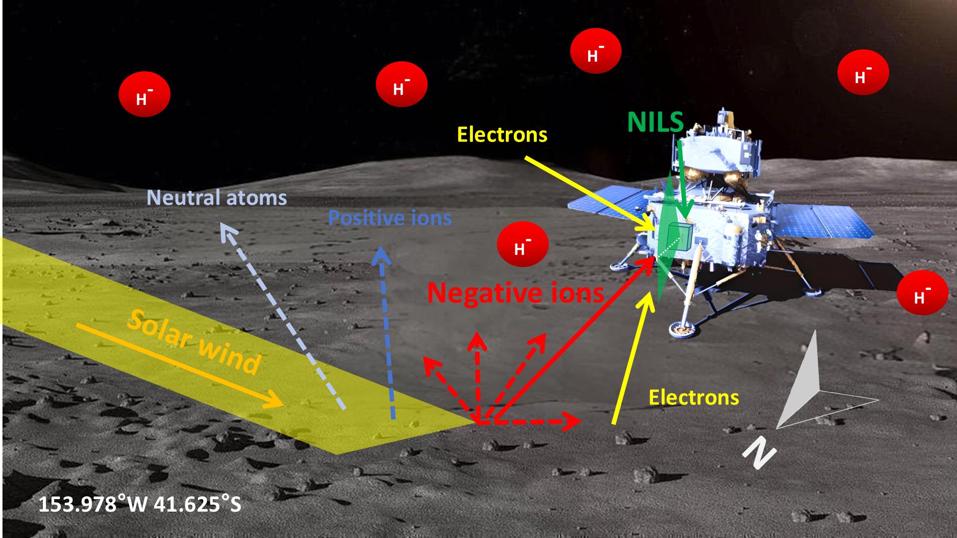 科学家从理论上预期,月球环境中也可能存在负离子。然而,氢负离子在太阳辐射下极易失去电子而消散,难以“存活”到环月轨道器高度,导致以往的月球轨道探测任务未能捕捉到负离子信号。由于缺乏直接的观测证据,月球上负离子是否存在及其分布特征,一直困扰着科学界。于是,月表就位探测成为突破这一瓶颈的关键手段。
