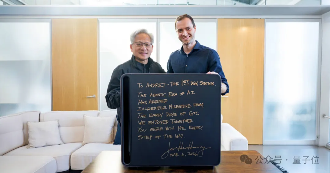 首台DGX Station(GB300)送给了卡帕西——这位AI时代的个人开发者代表。