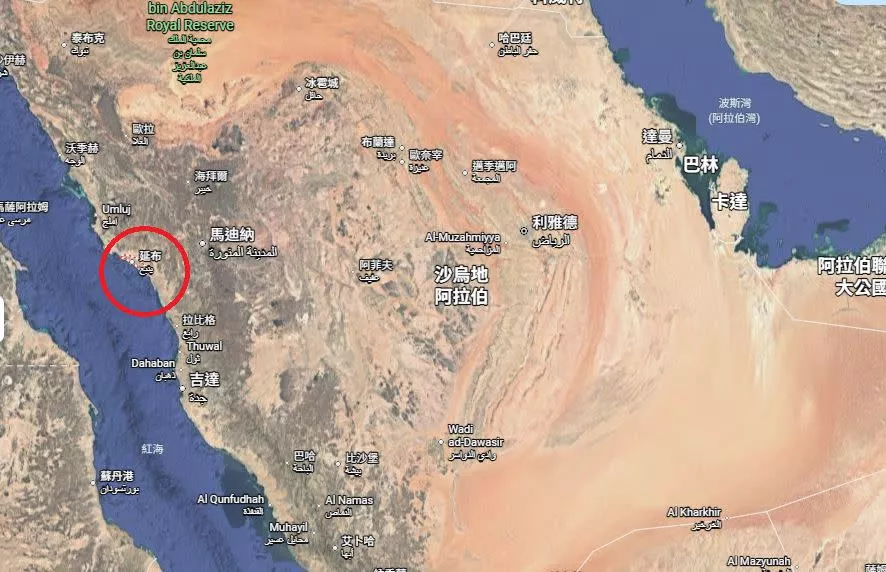 伊朗阻断荷莫兹海峡的石油运输,沙乌地阿拉伯以红海侧的延布港作为出口替代。(图/Google地图)