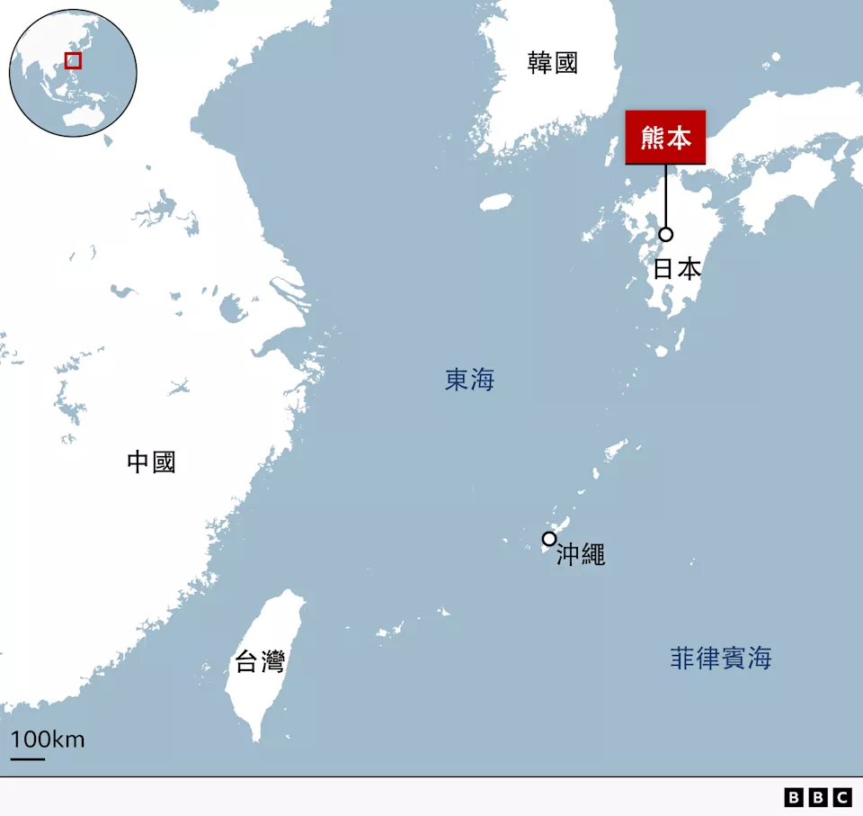 日本部署长程导弹的熊本距离台湾约1,200公里。 [BBC]