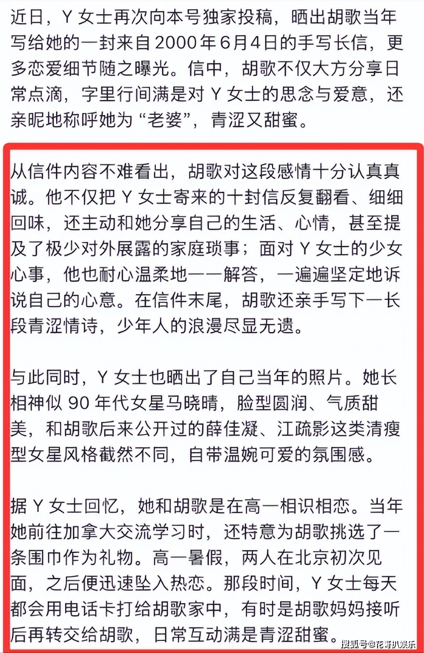 这次曝光的主角是胡歌的初恋Y女士,两人在2000年相恋。那时胡歌还在为考上戏全力备考,青涩少年怀揣着演员梦,和远在北京的Y女士靠着一封封手写书信,开启了一段纯粹的异地恋。