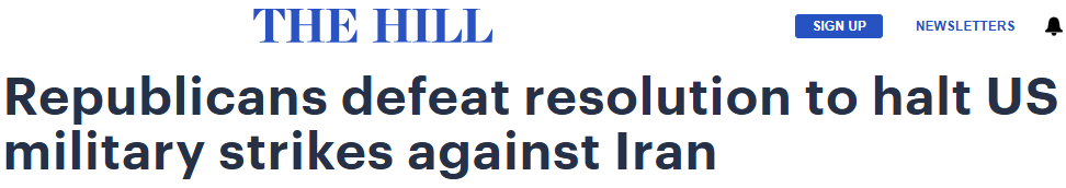参议院否决停止美对伊朗打击决议The Hill