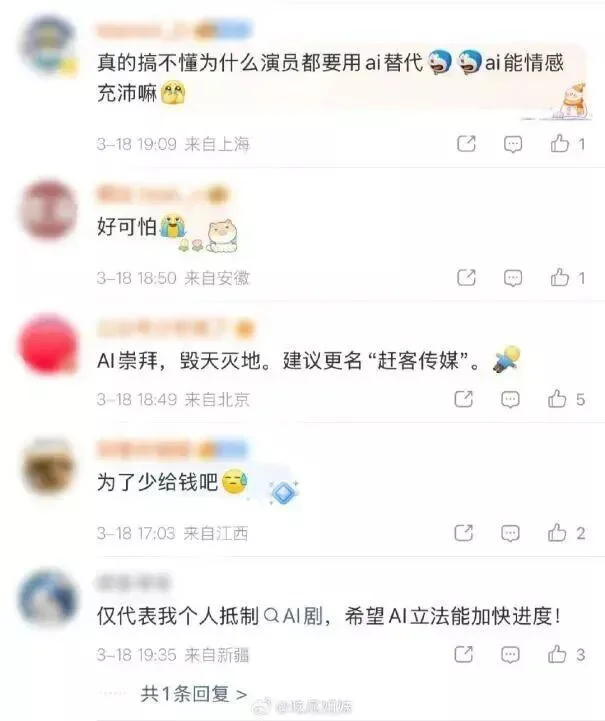 昨天,微博话题“男二以下AI演员”冲上微博热搜。