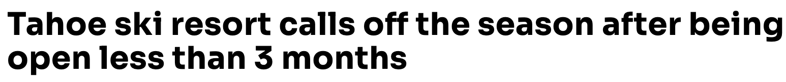 度假村在官方Facebook声明中解释称:“这是一个起伏不定的赛季,经历了大规模暴雪,也遭遇了暴雨。鉴于目前的天气预报显示气温回升且缺乏降水,我们被迫调整了关闭日期。”