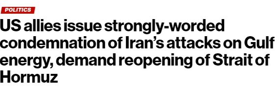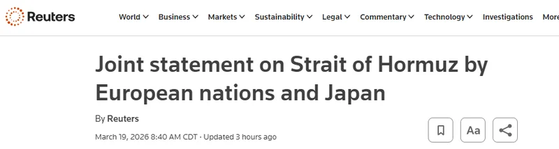 刚刚,一份来自美国核心盟友的联合声明迅速引发关注。法国、德国、意大利、日本、荷兰以及英国六国领导人同步发声,罕见就同一议题发表统一立场:他们不仅“强烈谴责”伊朗近期在海湾地区的行动,还直接提到一个敏感问题:霍尔木兹海峡,正在被“事实性封锁”。