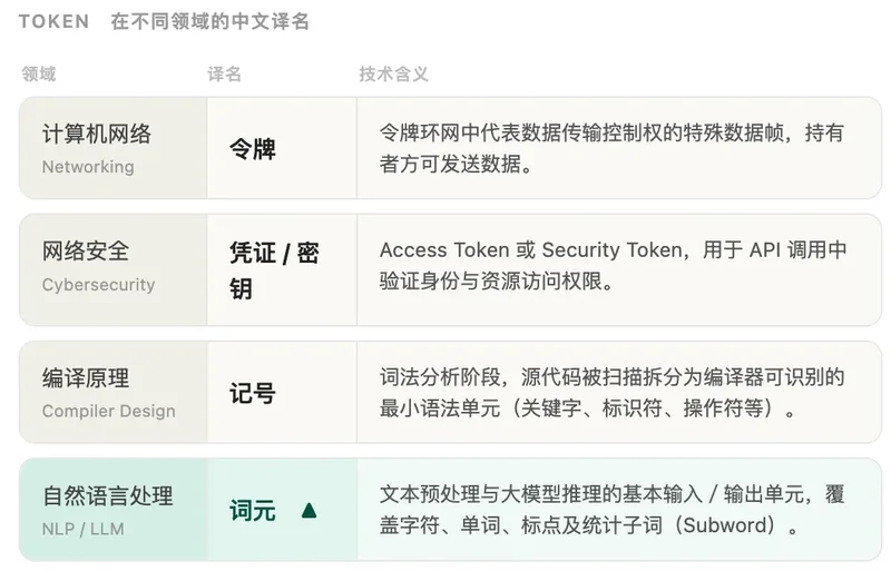 其一,单就计算机科学领域内部,Token 在不同子领域,既有截然不同的含义: