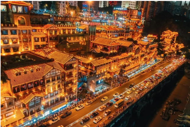 轻轨穿楼,夜景连片,核心商圈的奢侈品店一家挨一家。社交媒体滤镜一盖,这里是赛博朋克,是消费主义的样板间。