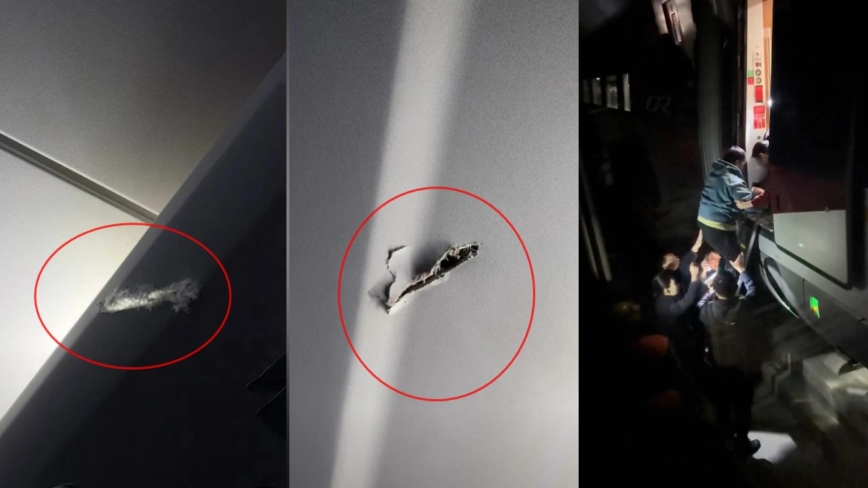 2026年3月18日,京哈高铁一区段突发意外,G178次列车车顶被不明物体砸穿车顶。(视频截图)