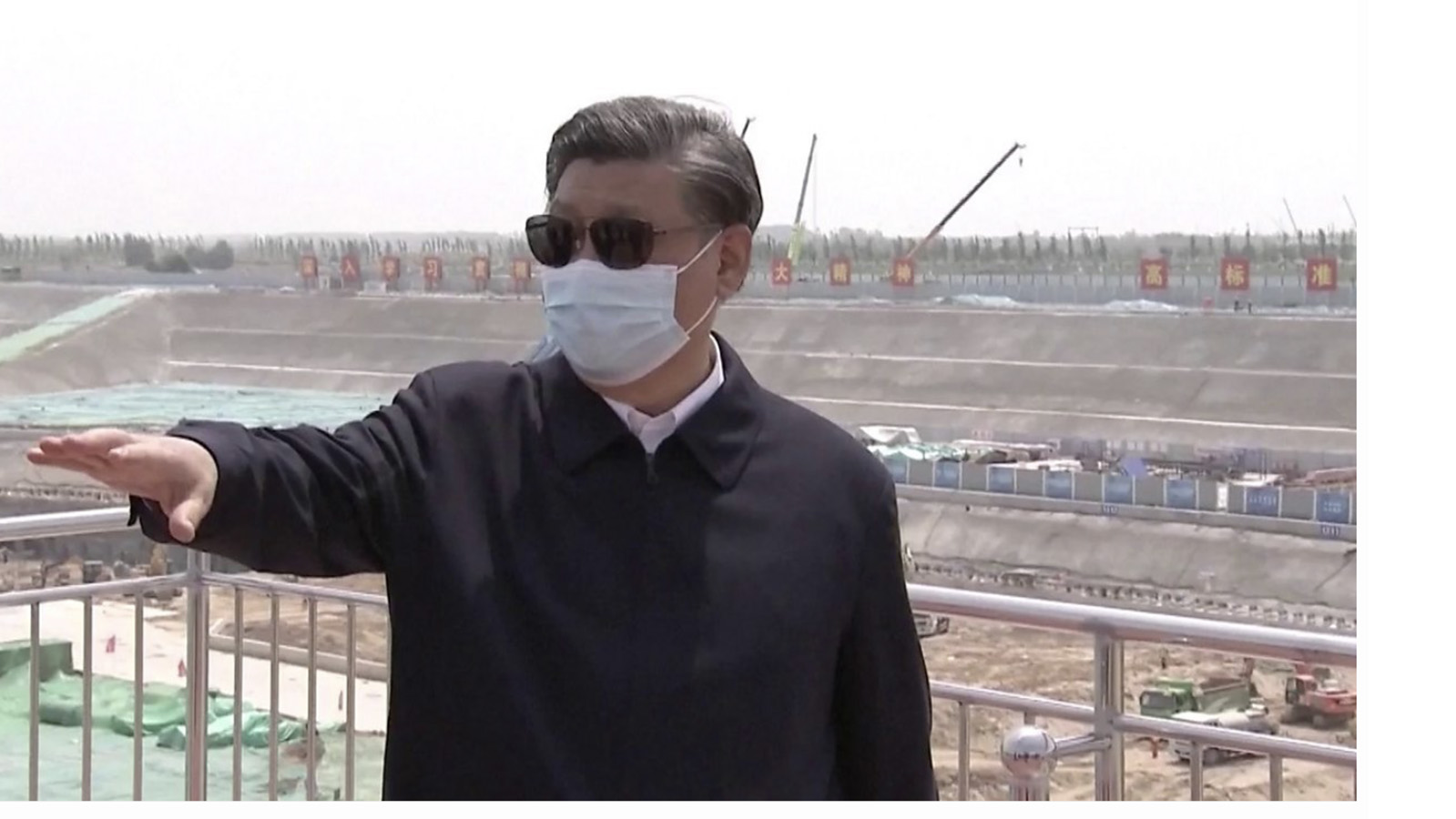 图为2023年习近平带著口罩和墨镜视察雄安(网络视频截图)