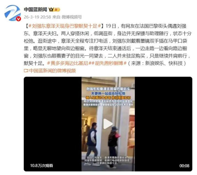 从当年轰动一时的恋情曝光,到婚后章泽天频繁现身时尚圈、投资领域,乃至与刘强东的每一次合体亮相,这对夫妇的公众形象始终被置于巨大的聚光灯之下。他们的每一次出现,似乎都伴随着商业版图、婚姻状况的解读与猜测。而此次巴黎街头的“无痕”出行,恰恰因为剥离了所有商业符号和安保阵仗,反而让公众视线聚焦到了关系本身----那种历经风雨后沉淀下来的、无需表演的平静与默契。