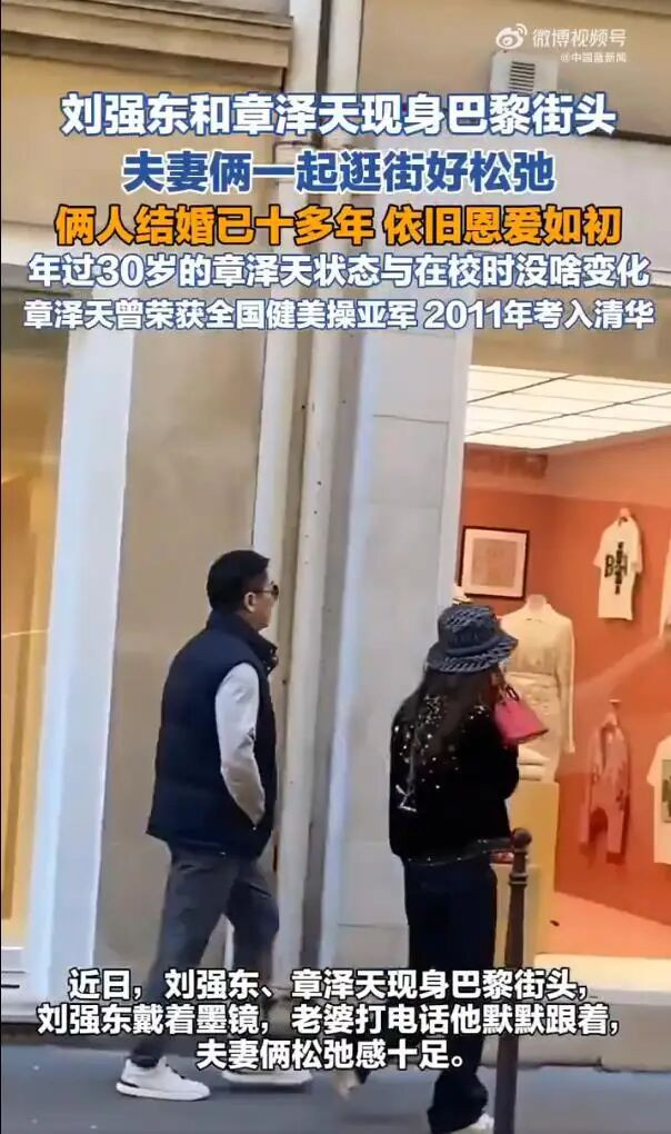 刘强东章泽天巴黎同框,默契逛街韩小娱