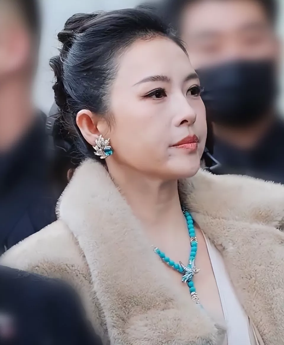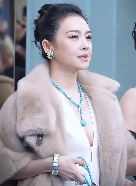 其他人都穿得非常单薄,只有章子怡身穿长裙,外面又搭了貂皮外套。