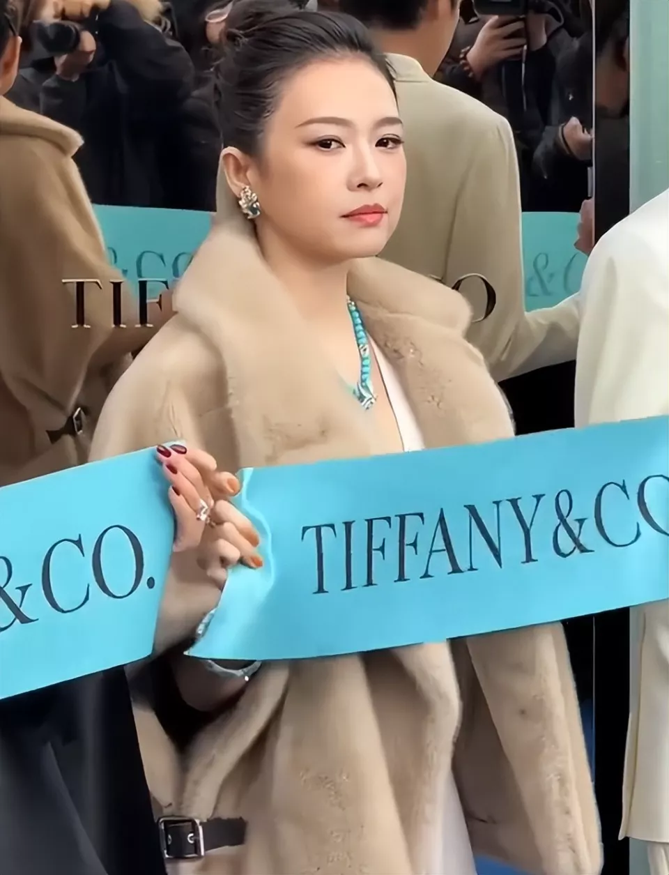 她与蒂芙尼合作整整12年,上一年拿下最高头衔,成为全球品牌代言人,在这样的剪彩活动上,自然是最中心的大咖。
