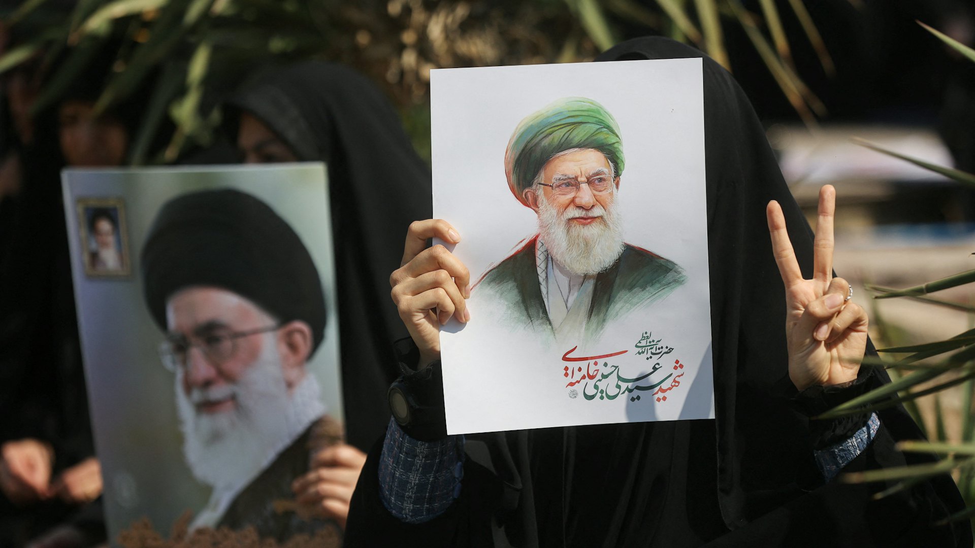 2026年3月6日,伊朗首都德黑兰,一名民众在当日举行的集会上,手持已故前伊朗最高领袖哈梅内伊的画像。(Reuters)