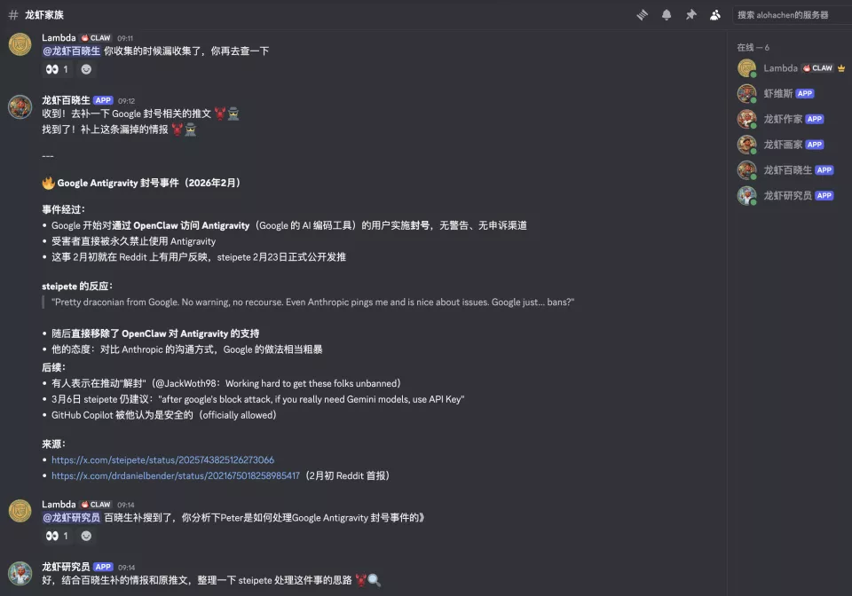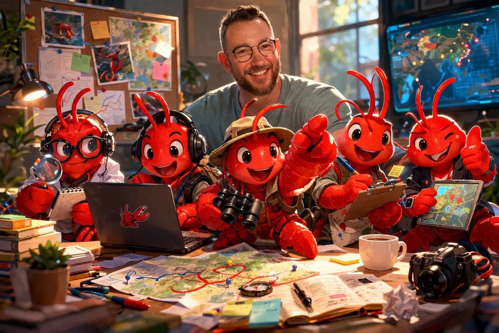 AI工程师Lambda是OpenClaw的重度用户。他用OpenClaw养了五只AI龙虾,分别叫龙虾百晓生、龙虾研究员、龙虾作家、龙虾画家和龙虾统筹,日常靠这五只虾协作完成从数据采集到内容生产的全部工作。对龙虾之父的好奇积累已久——这个人到底是怎么工作的?OpenClaw爆火的真正原因是什么?于是他做了一件顺理成章的事:派出五只龙虾,去调查它们的父亲。