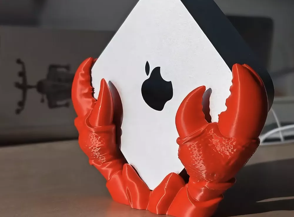 社区里到处是龙虾派对、龙虾周边,有人给Mac Mini做了虾钳造型的支架。