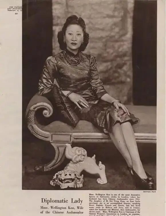 二婚高调嫁给“民国第一外交家”顾维钧,婚后以公使夫人身份亮相白金汉宫舞会时,她身穿Charles Frederick Worth订制晚礼服、头戴卡地亚钻石冠冕惊艳全场,被泰晤士报和各大时尚杂志争相报道~