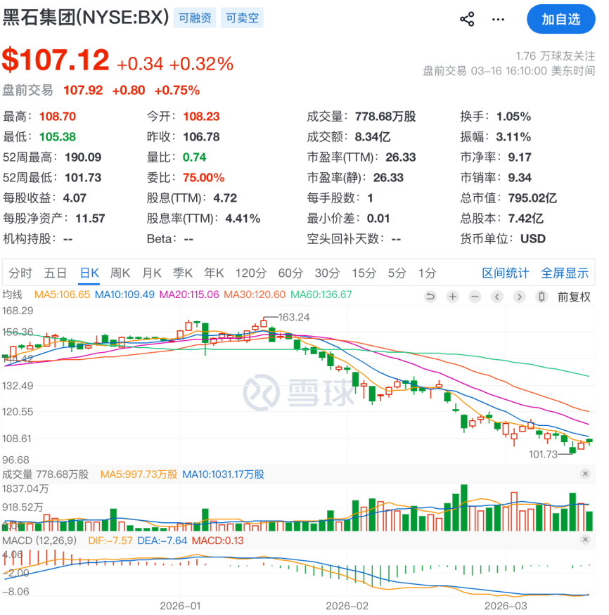 市场愈发恐慌。2026年年初至今,黑石股价跌幅为40%。