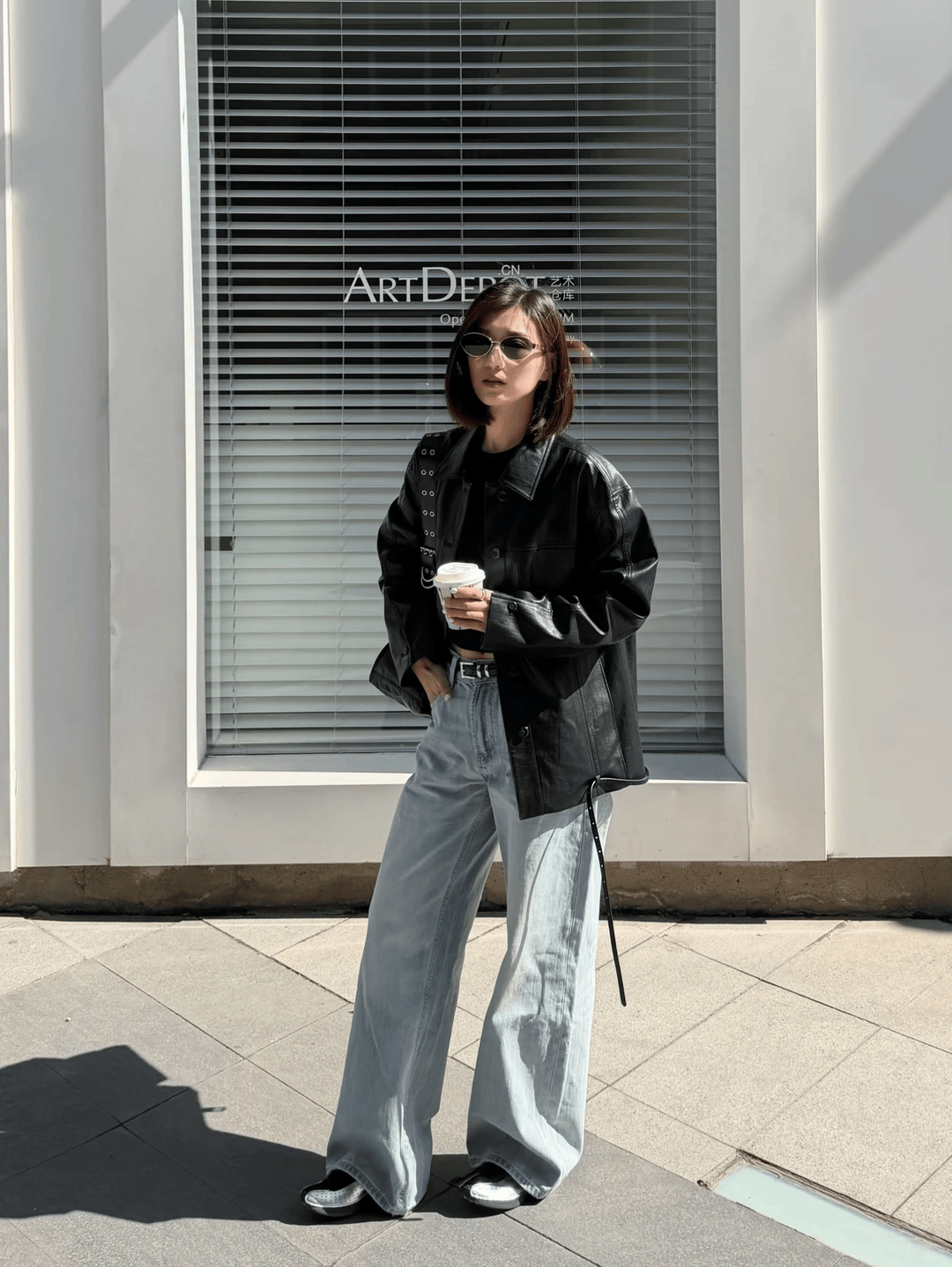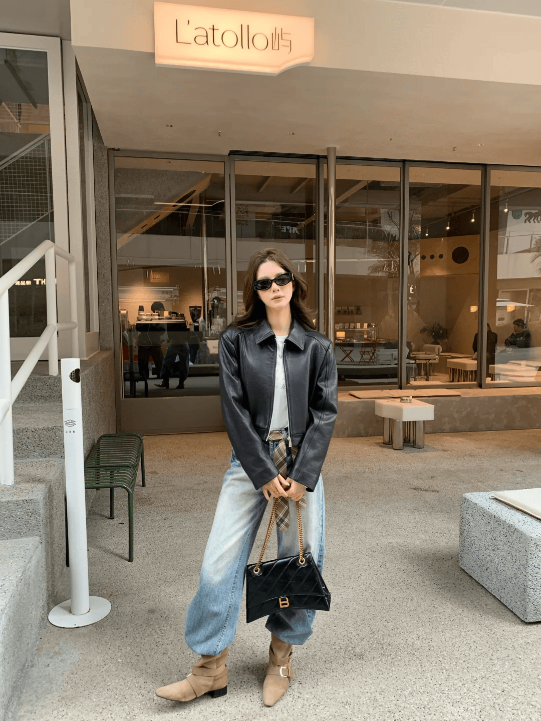喜欢更加酷飒的造型,可以选择束腿牛仔裤,或者将牛仔裤的裤腿塞进短靴中,打造更加随性帅气的造型,皮夹克尽量选择短款的大廓形,显瘦显身材的效果更好哦!