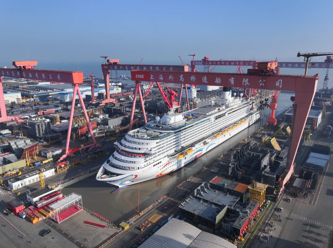 从船坞缓缓驶出的这艘“海上城市”,整体建造进度超94%,计划于2026年底完成交付,并在广州南沙邮轮母港开启国际航线。