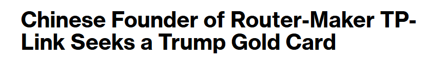 据知情人士透露,面临川普政府国家安全调查的大型路由器制造商的中国创始人,已根据“川普金卡”计划申请了快速签证。