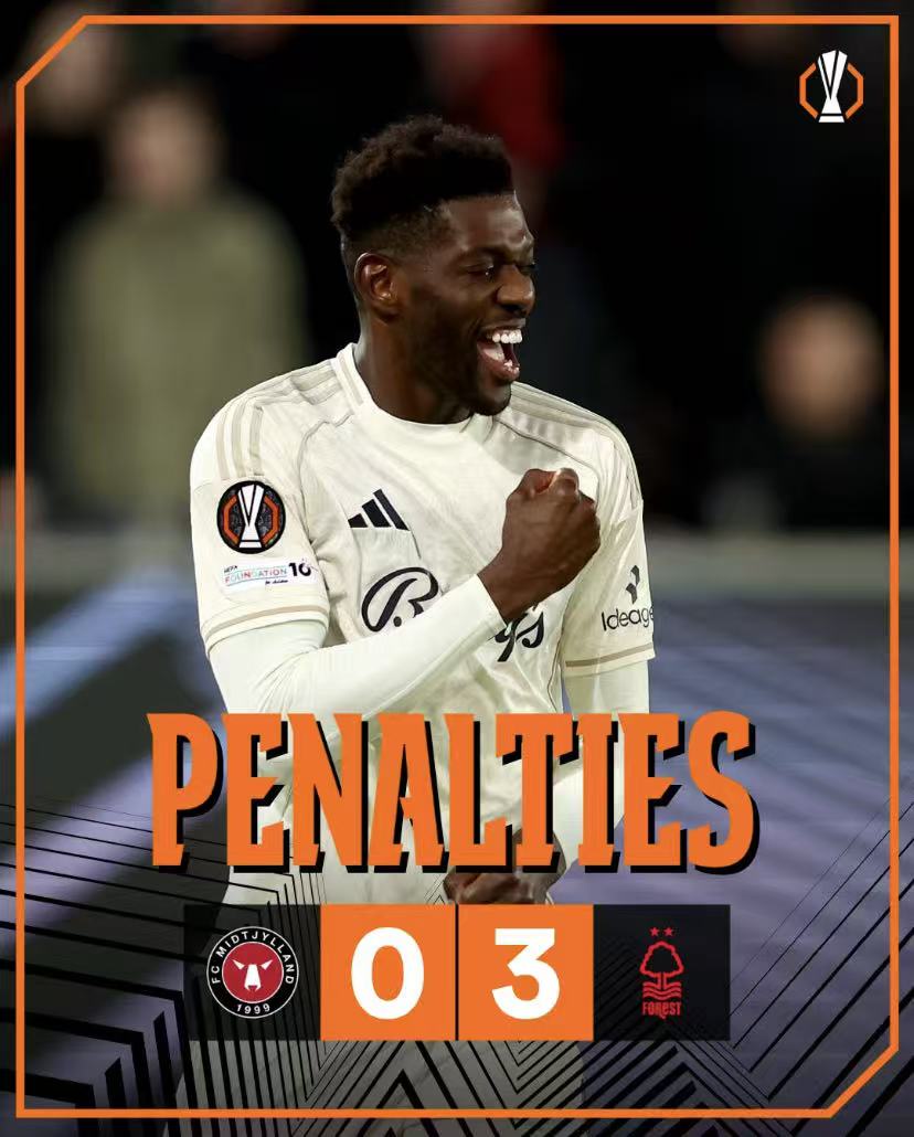 · 诺丁汉森林 3-0(点球)中日德兰:过程极为惊险。森林在客场常规时间2-1取胜,总比分扳成2-2。加时赛进球被吹后,比赛进入点球大战。结果中日德兰前三罚全部罚丢(包括曹圭成射中立柱),森林则稳稳命中,以点球3-0惊险晋级。