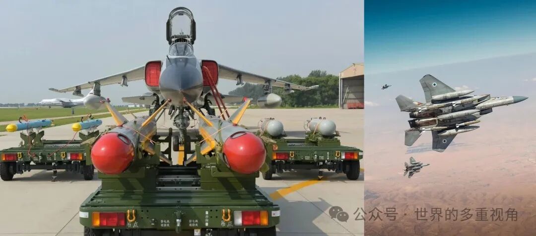 这次空袭伊朗期间,以色列空军 F-15I 经常呈现的 4 枚 GBU-31(500 公斤级)炸弹 + 3 副油箱构型,对歼轰 - 7A 来说也不是问题 —— 在上图的基础上,翼根用一对双联复合挂架,各带 2 枚天戈之类的 250 公斤级炸弹即可。