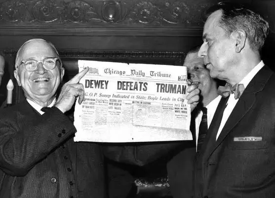 (杜鲁门连任后展示预测自己失败的报纸)