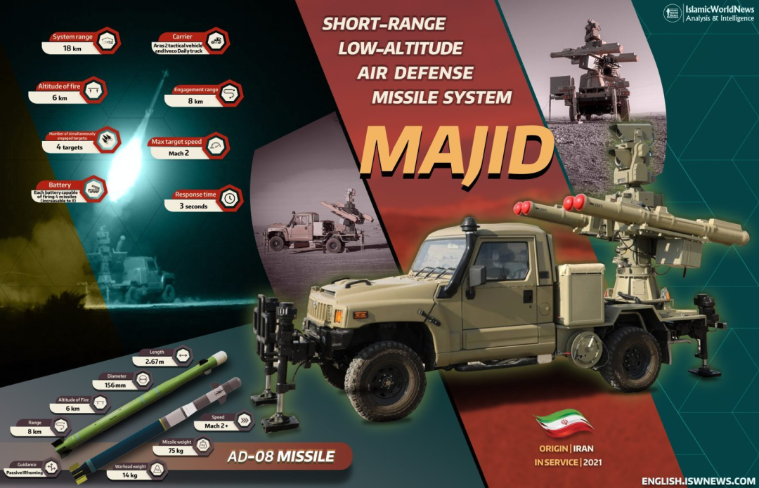 根据伊朗方面的声明,他们使用的是 “新型先进防空系统”,结合现场视频和弹道分析,这很可能不是传统的雷达制导导弹,而是两款 “怪胎” 武器的组合:马吉德(Majid)近程防空系统,或者 “358” 防空巡飞弹。
