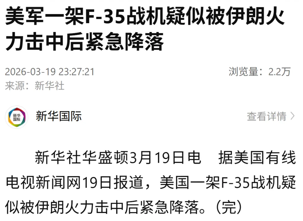 再看美军那边,美军中央司令部发言人蒂姆・霍金斯海军上校承认:一架 F-35 在伊朗上空执行任务后,被迫实施紧急迫降,飞行员状态稳定。
