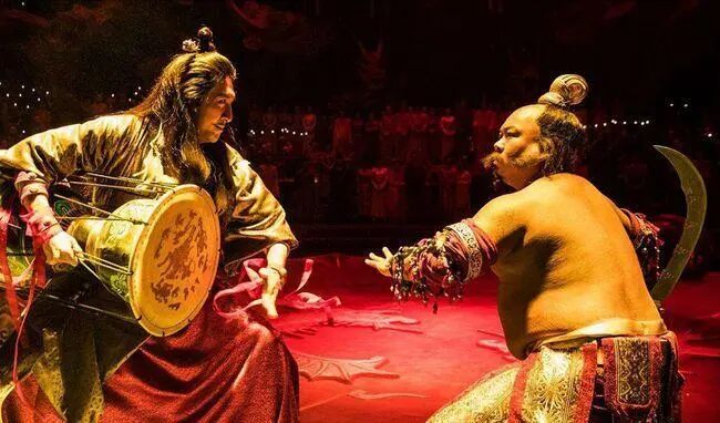 ▲电影《妖猫传》中唐玄宗与安禄山共舞。(图片来源:影视剧照)