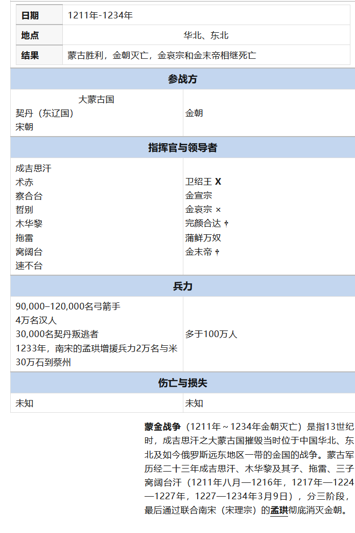 成吉思汗的扩张和征服,东部就是蒙金战争的战场