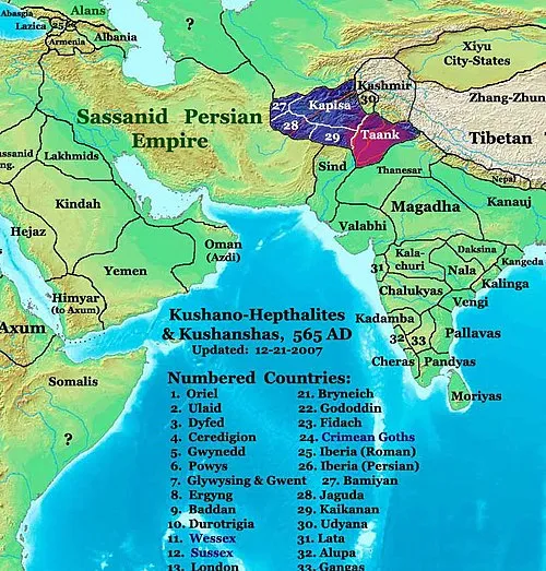 公元565年的亚洲,可见沙阿王朝及其邻国