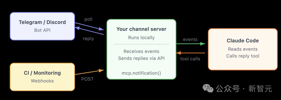 本质上,Channel是一个MCP server,它能把外部事件主动推送进Claude Code会话,让Claude对终端之外发生的事情作出反应。